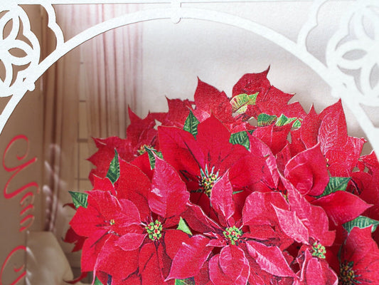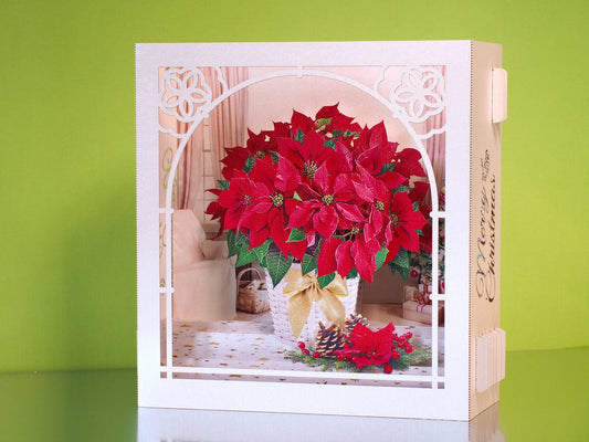Poinsettia bouquet paper pop up 3d laser cut model. Christmas card with flowers miniature.